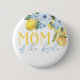 Pin de botón de regalo de la ducha de la novia de limón para la madre. Con hermosas flores de acuarela azul pizarra elegante y suaves limones amarillos. ¡Consulte los otros botones a juego de la colección para otros invitados importantes como la dama de honor, la madre del novio, las damas de honor y más!