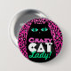 ¡Un botón lindo y divertido "de la señora loca del gato" que ofrece un gatito negro hermoso en estampado leopardo rosado y negro - hace una diversión y un regalo único para sí mismo o ese entusiasta felino raro en su vida! Haga clic el PERSONALIZAR para cambiar los colores de texto, fuentes, añada el texto adicional o para más opciones que corrigen