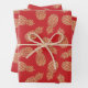 Tres hojas de papel de envolvimiento presentan piñas doradas sobre un fondo rojo (o cualquier color que elija). MÁS colores en nuestra tienda.