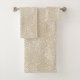 Este juego de toallas de baño presenta un moderno patrón abstracto de pincel en blanco sobre el marrón caqui para un aspecto contemporáneo y neutro.