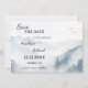 Boda de Invierno Guardar la tarjeta de fecha con una escena de montaña acuática con bosque de pinos. Al fondo hay espacio para tu propia foto. Se agrega una plantilla de código QR para su comodidad.