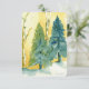Una acuarela de pinos pintada a mano en un atardecer resplandeciente con inspiración de la península superior de los bosques de Michigan.