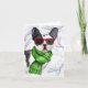 Divertido más pequeño que el promedio y doblado saludo de vacaciones con marcos botánicos y un Boston Terrier vestido marcadamente. Escribe tu mensaje con letras a mano dentro para un toque personal.