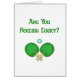 Está usted las paletas del ping-pong del día de St Patrick afortunado de sensación del trébol. Ponga sus tenis de mesa afortunados irlandeses de la camisa y del juego del ping-pong del encanto con la suerte del irlandés en su lado