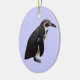Un pingüino adulto que se coloca vertical. El plumaje del pingüino es negro con las manchas del blanco, el blanco del pecho del pájaro con una banda de un plumaje más oscuro. Los remiendos del negro rodean los ojos oscuros y un remiendo del pingüino de la carne rosada en la base del pico del pájaro. Pues los pingüinos no pueden volar sus alas se han desarrollado como aletas para nadar. Este pingüino es uno de una familia de pingüinos de Humboldt cuyo hábitat natural sea Suramérica.