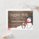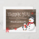 Snowman penguin Winter Wonderland Gracias tarjeta. Fondo De Madera Rústica. Para una mayor personalización, haga clic en el botón "Personalizar" y utilice nuestra herramienta de diseño para modificar esta plantilla.