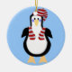 Pingüino lindo del dibujo animado con la bufanda colorida y el gorra del día de fiesta, todo cubiertos hacia fuera para el invierno. Un gran ornamento del navidad. Disponible en siete diversos formas o estilos del ornamento. Haga clic en el botón del personalizar para ver todas sus opciones.