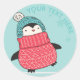 Estos pegatinas redondos son perfectos para sellar encima de sus tarjetas de Navidad o la celebración de días festivos invita. Ofrecen un ilustracion lindo de un pingüino liado para arriba en un gorra y un suéter contra un fondo de la verde menta. Utilice el campo de la plantilla para añadir su propio nombre o saludo a estos pegatinas.