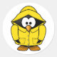 Un pingüino adorable todo listo para la lluvia vestido con un impermeable. Este pingüino en impermeable es tan adorable. El impermeable es amarillo y se pueden ver los grandes ojos de pingüino bajo el capó. Este diseño se ve genial en estos pegatinas. Perfecto para usted o como regalo