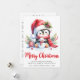 Permita que esta tarjeta de vacaciones blanca y roja ayude a enviar a sus seres queridos los deseos y saludos más cálidos. Esta linda tarjeta de Navidad con el dicho "Feliz Navidad" y un alegre pingüino con una ilustración de un muñeco de nieve tiene un texto de plantilla donde puede escribir sus saludos, nombre de la familia y año. En el reverso, hay un calendario de 2026 (domingo a sábado) que hace que las tarjetas sean prácticas para todo el año.