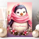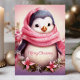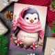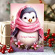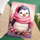 Envía alegría navideña con esta tarjeta conmovedora que presenta a un adorable pingüino envuelto en una bufanda rosa rodeado de flores festivas. El mensaje de "Feliz Navidad" añade un toque dulce, perfecto para difundir alegría a seres queridos durante la temporada navideña.
