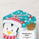 Una única, llamativa y económica carta de recetas para amigos y familia, todo en una sola invitación. Con pingüinos personalizados brillantes y coloridos que llevan gorras Navidades; una galleta de chocolate; galletas redondas de jengibre con escarcha y un diseño holístico; todas ellas están colocadas sobre un fondo lleno de hojas azules, verdes, rojas y moradas, rayas de nieve y chevron. Personalice las plantillas de texto y ponga en marcha el espíritu de los Navidades.