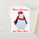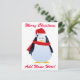 Un pingüino adorable con un aspecto muy festivo en su sombrero de Papá Noel y bufanda roja para sus Navidades.
