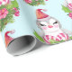 Papel envuelto con un diseño tierno y caprichoso que presenta un adorable pingüino con un sombrero rojo de santa. Detrás de un ramo de flores con caramelos de rayas rosas y blancas.