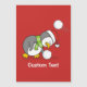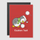 Un pequeño personalizado de pingüinos con sombrero de santa y bufanda verde doblándose para conseguir una bola de nieve evitando otra.