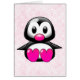 Diseño pingüino en negro y chicle rosado con fondo rosa claro / rosa.