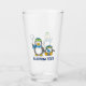 Un pequeño pingüino personalizado con bola de nieve y uno desmayado. Texto personalizado.