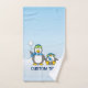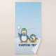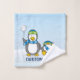 Un pequeño pingüino personalizado con bola de nieve y uno desmayado. Texto personalizado.