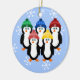 ¡Este ornamento adorable del árbol de navidad es perfecto para la persona que ama pingüinos, recoge artículos del pingüino, o apenas ama simplemente cosas lindas! Características del diseño un fondo azul claro con los copos de nieve blancos. Hay cinco pequeños pingüinos blancos y negros lindos que se colocan en un grupo. Cada pequeño pingüino está llevando un gorra del invierno con diseños del copo de nieve en ellos. Los gorras están en verde, azul, rojo, rosado y amarillo. ¡Estos pequeños pingüinos todos se visten y alistan para el invierno y la llegada del navidad! ¡Este ornamento del árbol de navidad puede ser personalizado añadiendo un nombre o una licencia como es! ¡La opción es la suya! ¡Este los pingüinos en el ornamento del árbol de navidad de los gorras del invierno harán una gran adición a su árbol de navidad este año y a su colección del pingüino!