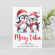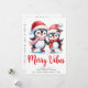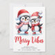 Envía a tus seres queridos los mejores deseos y saludos con tarjetas de Navidad personalizadas únicas que presentan un dicho de Vibraciones Navideñas y una linda pareja de pingüinos patinando sobre hielo con ropa roja. Esta tarjeta festiva de vacaciones tiene una plantilla de texto donde puedes escribir tus saludos, el nombre de la familia y el año. En el reverso, hay un calendario de 2026 (domingo a sábado) que hace que las tarjetas sean prácticas para todo el año. El calendario con meses en la fuente de escritura está colocado sobre un fondo blanco.