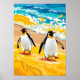Pingüinos que recorren la playa - Vibrante arte oc