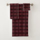 Bath Towel Set Of Three Sizes decorative bathroom amenity and home furnishing decor accessory printed with a Pink And Red Dots And Squiggles Pattern On Black original graphic art design illustration by TheFabricSeal at Zazzle #ZazzleMade https://www.zazzle.com/store/thefabricseal