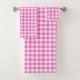 Estas preciosas toallas de baño inspiradas en una casa de campo presentan un bonito diseño rosa y blanco de chapa de gingham.