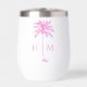 This coastal inspired monogrammed thermal wine tumbler features a preppy pink palm palmetto tree on white with a monogram that you can personalize with your choice of initials on each side. Great for personalized gift bags and party favors.