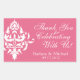 Este pegatina rectangular se coordina con nuestro juego de bodas de damasco rosado. Es muy popular en tonos rosas, con un patrón de damasco blanco. Esto podría usarse para favores de boda y/o etiquetas de regalo de agradecimiento.