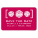 Este D20 Dice Gamer Save the Date Magnet en magenta es perfecto para la pareja de nerds que se enamoró de un interés compartido en juegos de rol y quisiera anunciar a su boda que muestra esta parte de sus personalidades. Este diseño anticuado presenta un trío simple y minimalista de muerte veintidós. Fácil de personalizar, simplemente agregue los detalles de su boda en los campos de texto proporcionados. Haga clic en "Personalizar" para encontrar más opciones de personalización.