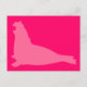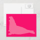 Un sello de elefante rosa chicle sobre un fondo rosado caliente impreso sólo para ti en una postal muy fina.