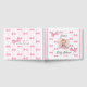 Este adorable libro de visitas para bebés tiene un bebé vintage en la parte delantera con arcos rosados de bonito y un lugar para que le agregues el nombre de la madre del bebé en la zona del personalizar. En la parte trasera hay rayas rosas y blancas con arcos y un lugar para añadir la fecha de la ducha para bebés. Esta es una manera fácil de organizar la ducha de bebé junto con un hermoso sake para que la "madre sea".