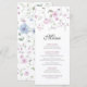 The front features beautiful floral accents and elegant typography, while the back is finished with a coordinating seamless floral pattern. Fully customizable—simply click "Personalize" to add your specific menu choices. Perfect for garden, spring, or whimsical fine-art weddings.