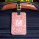 Pink Filigree Madera tallando Glam Floral Glamour Swirly Monograma Etiqueta de equipaje inicial