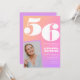 Invitaciones rosadas de cumpleaños 56 para su gradiente de fotografía retro