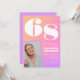 Invitaciones rosadas de cumpleaños 68 para su gradiente de fotografía retro