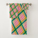 This towel set features a bright plaid pattern in pink, green, and golden yellow for a cheerful, preppy look. The layered lines and soft color mix add charm and personality to any bathroom. Perfect for kids, teens, dorm rooms, or anyone who loves colorful, upbeat décor. A fun way to refresh your space with a playful patterned design.