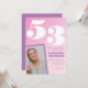 Pink 53 invitaciones de cumpleaños Retro Photo gradiente simple