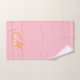 Easily personalize this Pink Modern Monogram Initial Fitness towel ideal for your fitness and gym practice. A modern minimal design with a script calligraphy initial in a soft orange and your name in white typography over a soft pink background. Great gift for a fitness fanatic.
