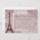 Anuncie su próximo día de boda con un parisino rosado, salve el anuncio de la fecha. El Save the Date cuenta con la Torre Eiffel, un pergamino en el que podrás detallar la información de tu ducha de novia adornada con damascos y sellos postales. También hay material de boda adicional disponible con este diseño. ¿Necesita ayuda con la personalización? Por favor, contáctame y elaboraré la redacción y los detalles para adaptarlos a su satisfacción.