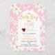 Pink Pastel Daisy Lady Bug Invitación de cumpleaño