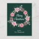 Esta divertida y festiva postal de Navidades acuarelas puede ser personalizada con un nombre o título. Cuenta con una corona de Navidades acuáticos con puntitas rosas y un fondo verde oscuro. El texto combina el guión manuscrito y las fuentes serif modernas para un aspecto elegante y sofisticado.