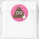 ¡Adorables pegatinas de puntos de polka rosa que muestran nuestra emoji de popó divertida y furiosa que se pone en su dedo medio!