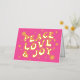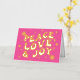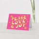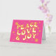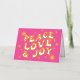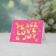Sweet and stylish! This pink retro Peace Love Joy Christmas card combines groovy 70s lettering with a playful pastel palette — perfect for sending bright, happy vibes all season long.