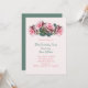 Invitación a la fiesta de cumpleaños de rosas rosadas para celebrar el día especial de la mujer. Papel rosa pálido con hermosos rosas abiertos con vegetación en la parte superior de la tarjeta plana. El texto es fácil de personalizar en tres lugares en fuentes rosas y verdes que se imprimen y se escriben. Una invitación simple y hermosa con un verde sólido al revés. Actualice a un artículo especializado para mejorar este diseño.