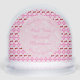 There is a pale pink circle with white marbled patterns on it which contains customizable text so you can personalize this design with the names of the happy couple and the Wedding date.