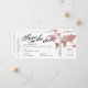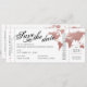 Tarjeta de pasaje de embarque Salve la tarjeta de billete de avión de fecha con un elegante diseño de mapas del mundo moderno en Relieve metalizado de imitación de oro rosa. Todos los colores del texto y del fondo son editables para que pueda personalizar completamente el diseño de la plantilla. A los invitados les ENCANTA recibir este destino o boda de temas de viaje o jurar invitaciones de renovación. Visite la colección de diseñadores de Personalizado Paper Works para coordinar elementos.