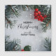 Envía alegría navideña con esta tarjeta de Navidad personalizada que presenta una hermosa escena invernal de ramas de pino cubiertas de nieve y brillantes bayas rojas de acebo. Enmarcado por agujas de pino verdes heladas y colocado sobre un fondo suave y nevado, este diseño captura la esencia de una atmósfera navideña acogedora. La tarjeta incluye sinceros deseos de Navidad, difundiendo calidez, paz y alegría a los seres queridos. Perfecta para aquellos que aman los diseños festivos inspirados en la naturaleza y los saludos navideños reflexivos.