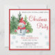 Acuarela Pinos Navidades de Snowman, decoración de pájaros cardenales rojos alegre invitación de fiesta de Navidades pequeños.