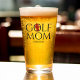 Vidrio fresco de moda con un prominente encabezado "GOLF MOM" en la tipografía minimalista y una silueta dorada incrustada en el texto. área de texto de personalizable bajo encabezado. Idea de regalo perfecta para tu golfista favorito. Ideal para Navidades, Día de la Madre, cumpleaños o cualquier día.